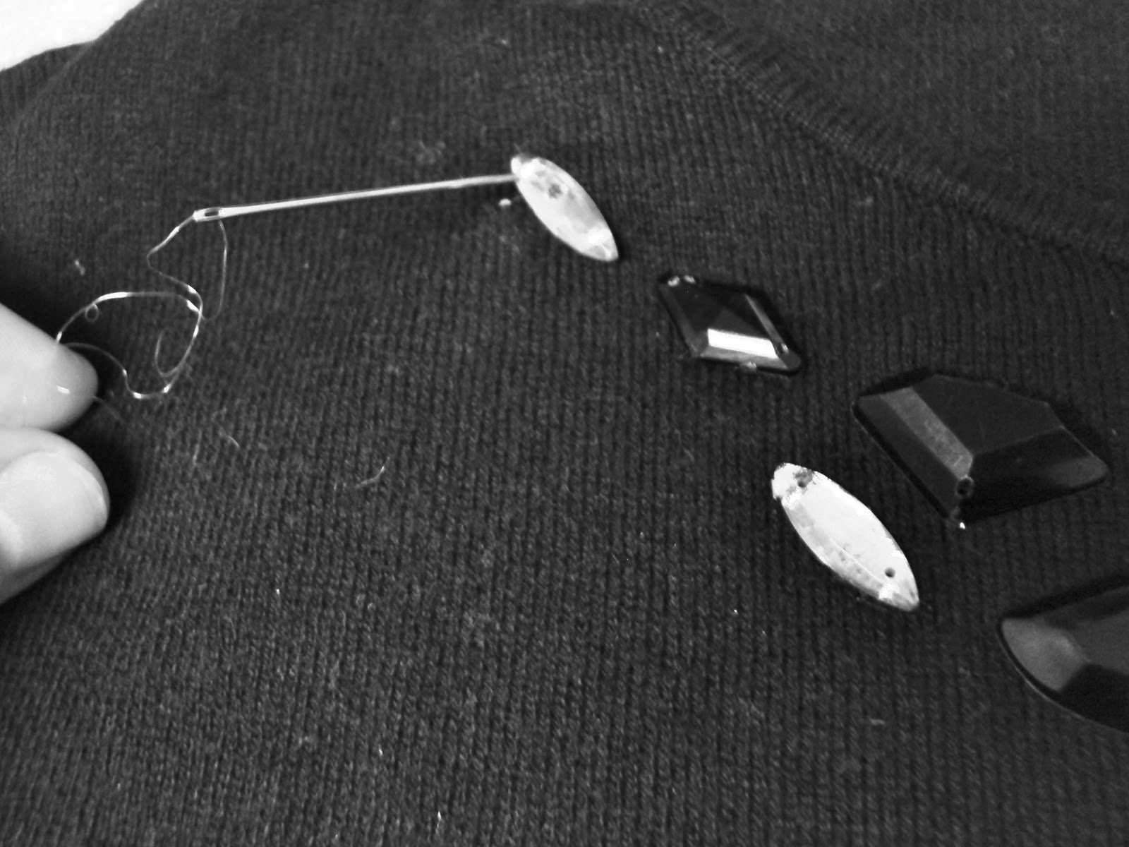 Line up all your supplies, lay sweater flat (make sure it's even) and sort your 'beads'.